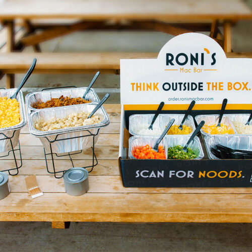 We offer a build your own Mac Bar so you can bring Roni’s with you anywhere. The Mac Bar comes with a great selection of toppings and a professional catering setup to keep your food hot. The Mac bar has two different sized set ups. One feeds up to 10 people the other feeds up to 20 people